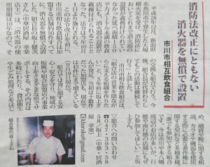 市川市相互飲食組合の消火器設置活動がメディアに紹介されました。